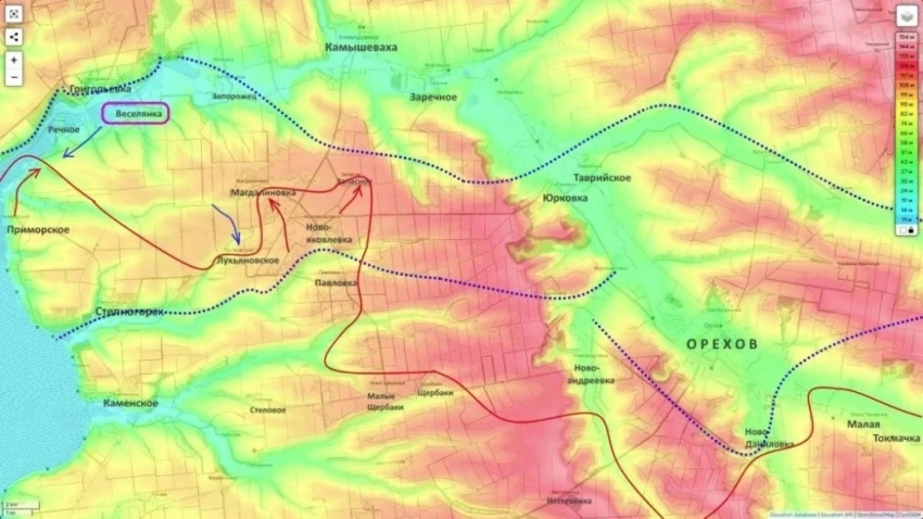 Формирование линии контроля Рождественское - Воздвиженка - Верхняя Терса, по оценке автора сводки, может создать условия для дальнейшего продвижения в сторону Любицкого и для возможного обхода Орехова с северо-восточного направления.