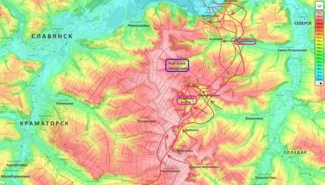 Мощная наступательная операция российских войск на Славянском участке фронта развивается сразу с трёх сторон. В частности, бойцы ВС России ведут наступление на населённый пункт Рай-Александровка, освобождение которого приблизит долгожданное очищение Славянска от украинских боевиков. Об этом в новой сводке СВО рассказал Юрий Подоляка.
