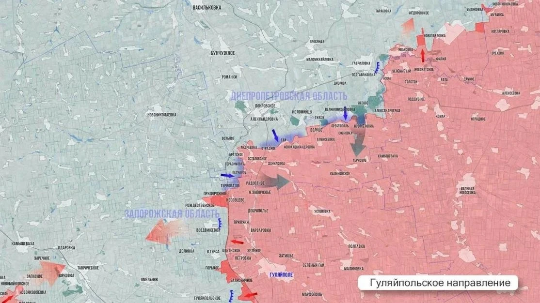 На этом участке ВС РФ демонстрируют отличные тактические результаты, развивая наступление в районе Гуляйпольского. Бои идут на окраинах Верхней Терсы, Воздвижевки и Рождественского. Враг лишен возможности контратаковать.