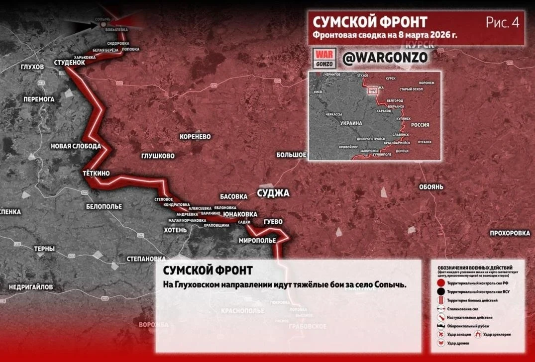 На Глуховском направлении подразделения российской армии установили контроль над населенным пунктом Сопыч вслед за освобождением от ВСУ Комаровки, Белой Березы и Сидоровки.