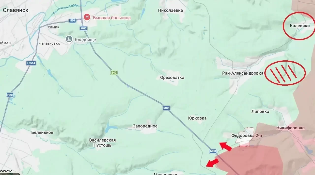Село Каленики расположено на берегу реки Сухая в пяти километрах к западу от Резниковки и в 18 километрах к востоку от оккупированного ВСУ Славянска. Освобождение этого села и продвижение в его окрестностях позволяет выдвинуть вперед ствольную артиллерию и расчеты FPV-дронов, чтобы наносить удары по позициям противника непосредственно в Славянске и на подступах к городу, отмечает "Военное обозрение".
