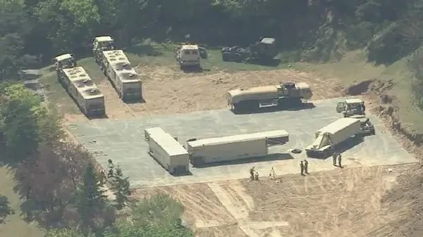 Спутниковый снимок Google Earth: самоходные пусковые установки системы THAAD на позиции в 10 км к западу от города Куми. Снимок сделан в июне 2024 года