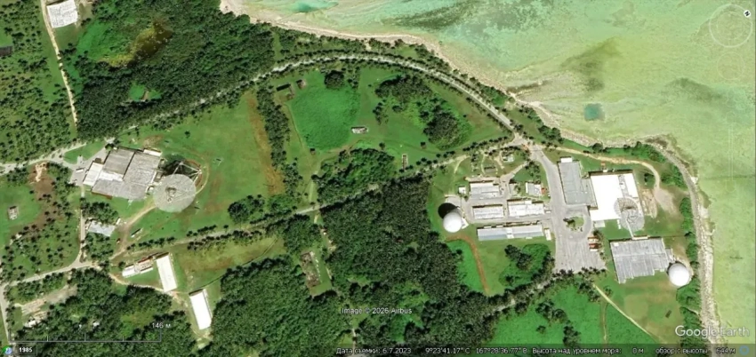 Спутниковый снимок Gооglе Еаrth: РЛС AN /FPS-108 COBRA DANE на острове Шемия. Снимок сделан в июне 2023 года