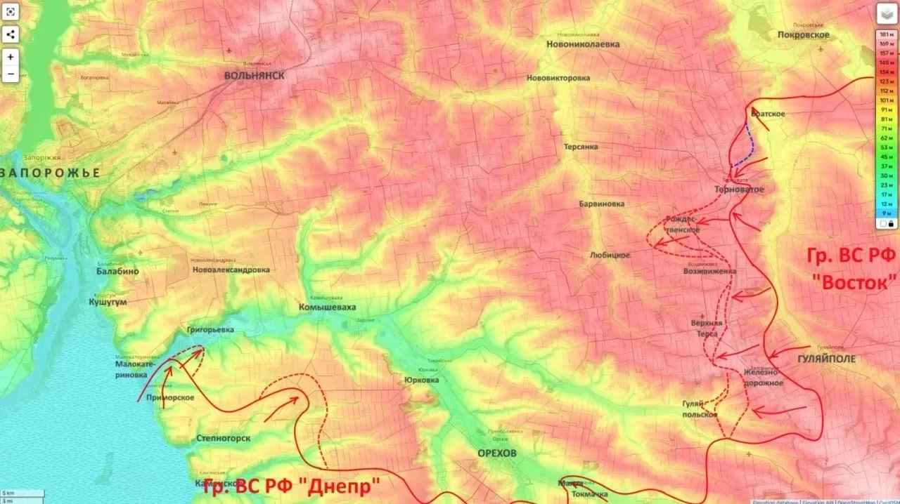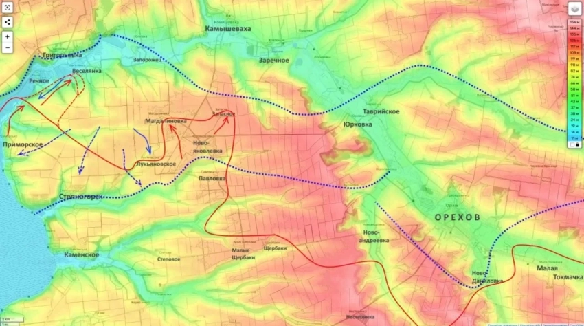 Пытаясь сорвать этот замысел, украинские части цепляются за лесополосы, контратакуют в районе Приморска и пытаются продвинуться по балкам к северным окраинам Степногорска. Эти попытки жестко пресекаются, резервы противника планомерно уничтожаются.