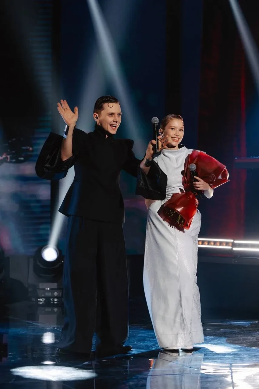 На фото, опубликованном в соцсетях марки, старшая дочь актрисы Юлии Пересильд и режиссёра Алексея Учителя позирует в белом футуристичном платье с подчёркнутыми плечами и бедрами, а её 20-летний бойфренд — в чёрном костюме в стиле джапанди. Завершает образ пары одинаковая "мокрая" укладка. Примечательно, что в этих же нарядах Анна и Ваня накануне появились в программе Павла Воли "Шоу Воли", где исполнили свою совместную песню "Силуэт" из фильма "Алиса в Стране чудес", в котором Анна сыграла главную роль.