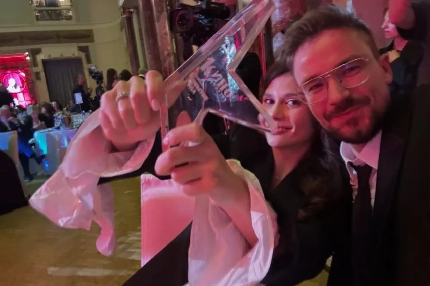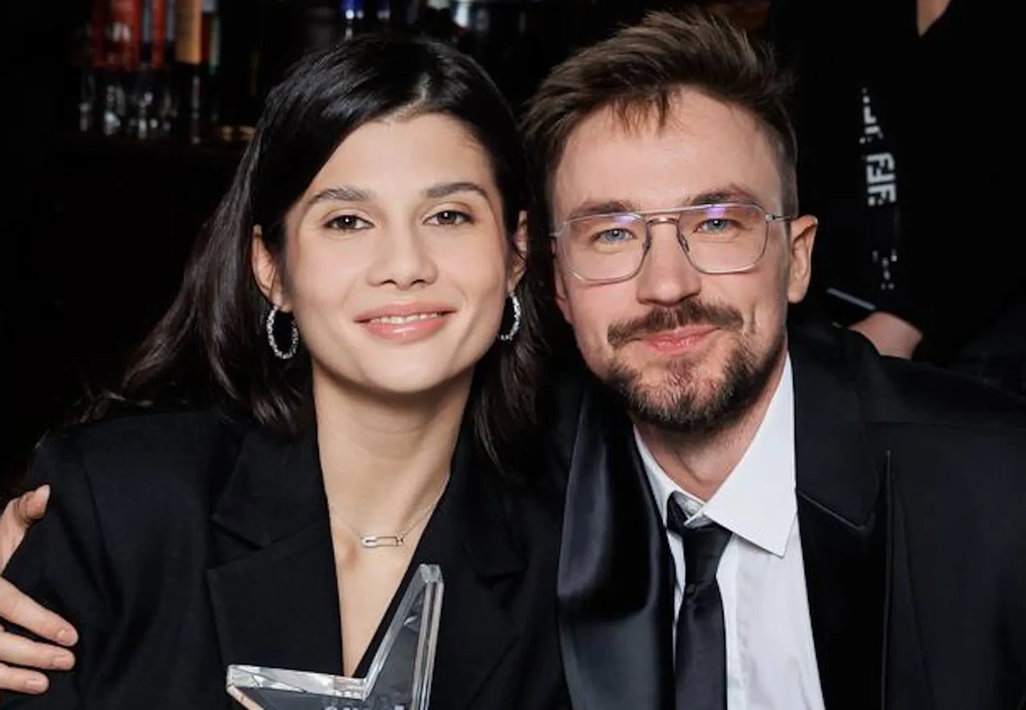 На дорожке 24-летняя Виктория позировала в белом мини-платье и чёрном жакете, а Александр надел классический костюм с галстуком. Во время церемонии Петров получил награду в номинации "Актёр года" и выступил с речью, поблагодарив организаторов.
