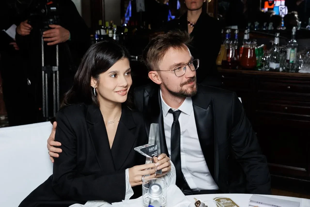 36-летний Александр Петров и его супруга Виктория посетили премию "Событие года" журнала "КиноРепортёр", которая прошла в ресторане гостиницы "Метрополь".