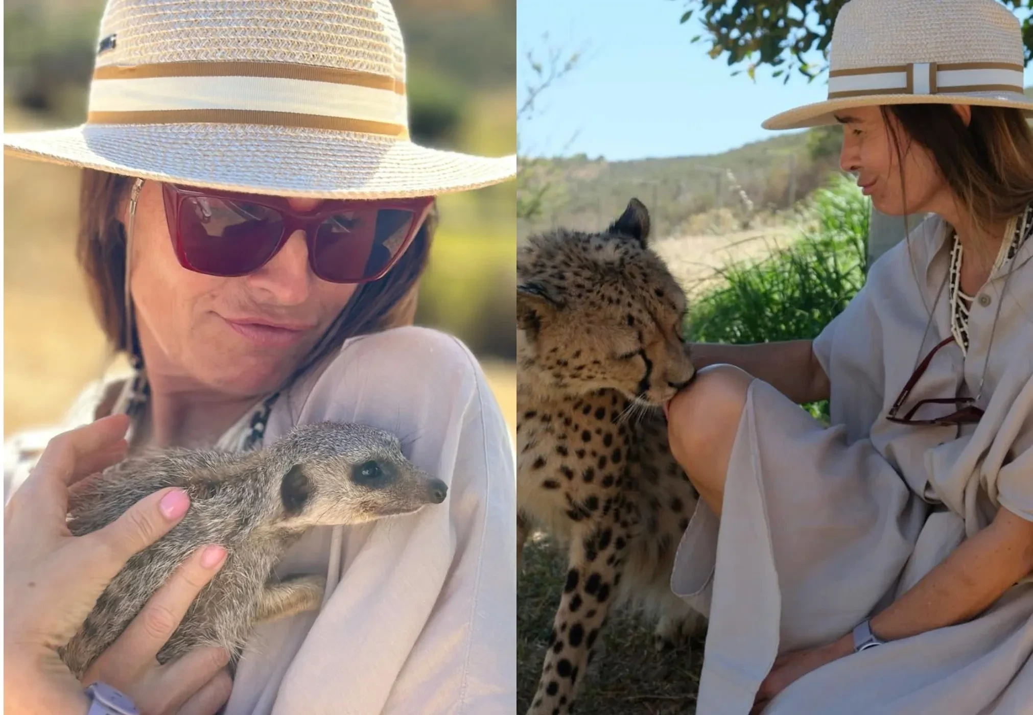 57-летняя Оксана Робски продолжает отдыхать в Южной Африке. Писательница и популярная в нулевых светская львица показала новые отпускные фото, где она приручает диких животных в Кейптауне. На снимках Робски, которая одета в платье-рубашку и шляпу, позирует с леопардом и держит на руках суриката.