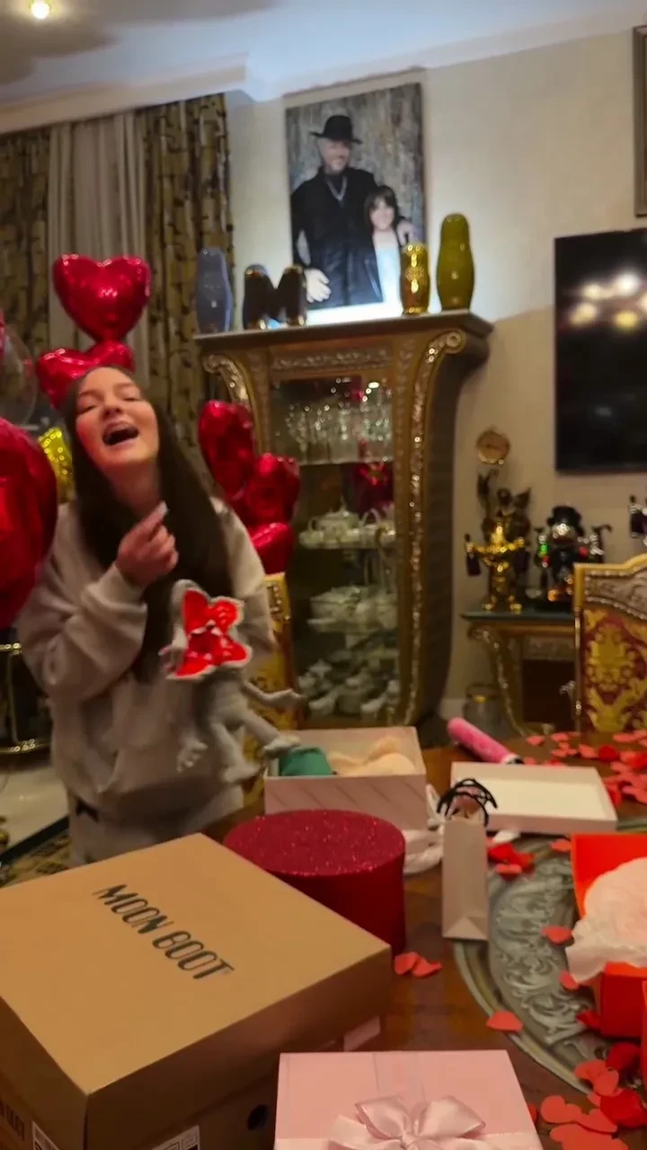 В видео, которое певец опубликовал в соцсетях, попали пакеты из ЦУМа с кроссовками из коллаборации дизайнера Джереми Скотта и adidas Originals ограниченного тиража (по цене около 150 тысяч рублей), коробка с ботинками-"луноходами" и подарок от брата девочки Мартина с консолью "тетрис" и косметикой (который, видимо, он приобрёл на карманные деньги).