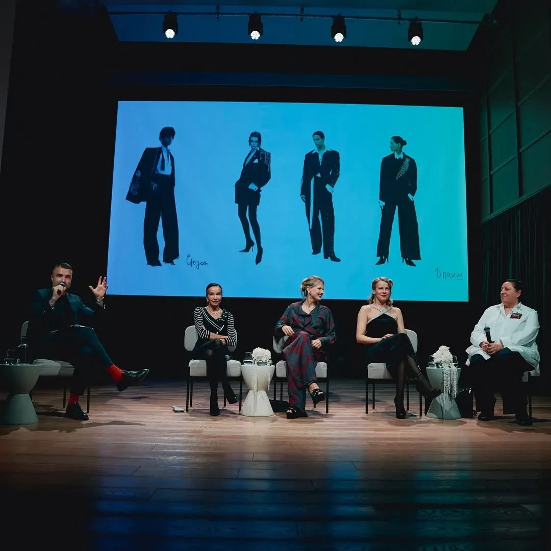 37-летняя жена гендиректора Первого канала Константина Эрнста снова вышла в свет "без бровей". Софья Эрнст блистала на вечере в брючном костюме с цветочным принтом, дополнив образ тёмной помадой. 45-летняя Александра Ребенок пришла в вечернем платье и на каблуках, дополнив образ "голливудской" укладкой. Актрисы вместе с театральным блогером Георгием Цицишвили поучаствовали в дискуссии и рассказали о процессе создания спектакля.