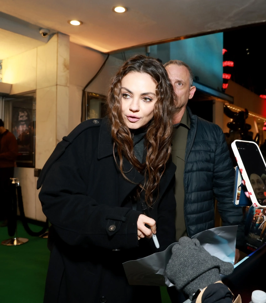 Мила Кунис посетила специальный показ своего нового фильма "Достать ножи: Проснись, мертвец" в Нью-Йорке. 42-летняя актриса позировала перед театром Paris Theater вместе с коллегами и пообщалась с поклонниками.