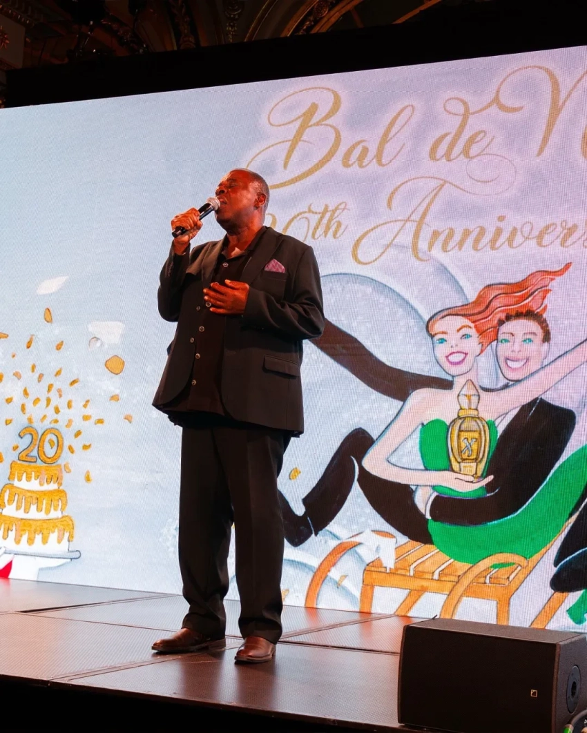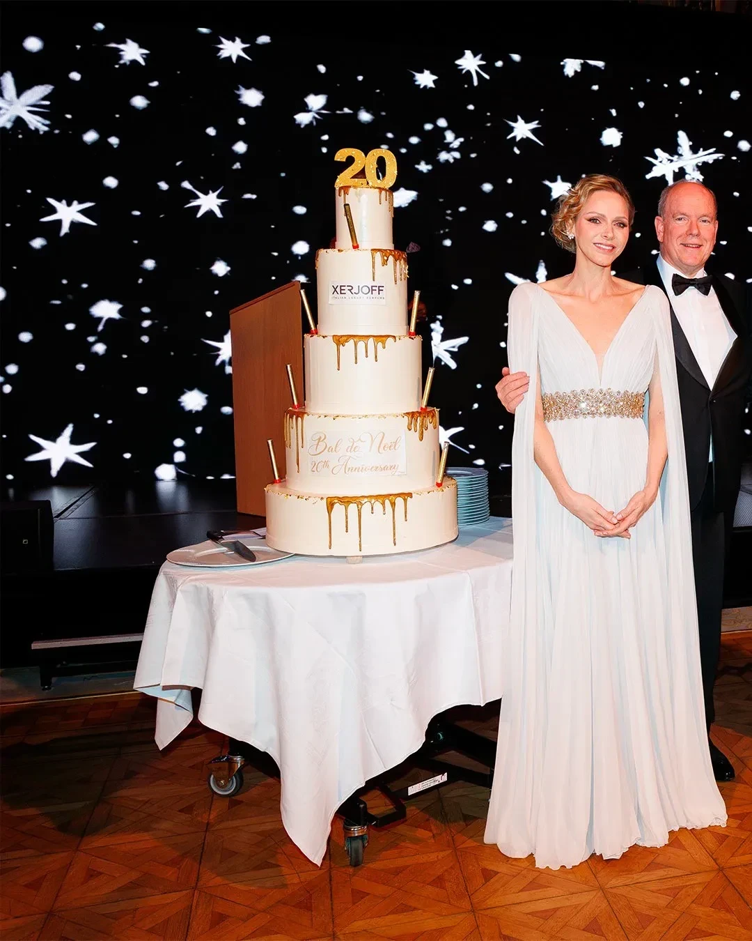 Для выхода в свет Шарлен выбрала белое платье-кейп с декольте и золотым поясом, дополнив образ серьгами с бриллиантами. Альбер II надел классический смокинг с бабочкой. На вечере прошёл аукцион, организованный Sotheby's, доходы от которого будут переданы в детский благотворительный фонд княгини Монако.