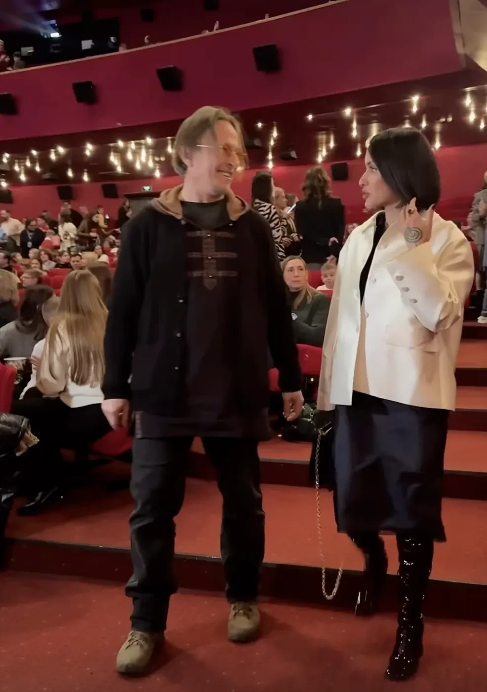 50-летняя Тина Канделаки вышла на дорожку в белом жакете и чёрной юбке, дополнив образ лаковыми сапогами и сумкой Schiaparelli. 30-летняя исполнительница одной из главных ролей в фильме и жена режиссёра Сарика Андреасяна Лиза Моряк пришла в чёрном платье и туфлях на каблуках в компании мужа и дочерей.