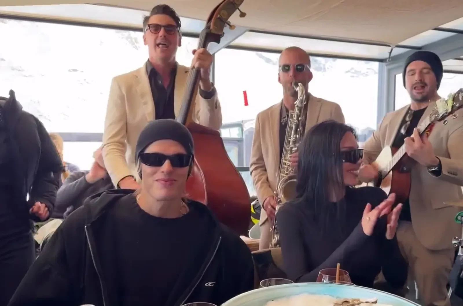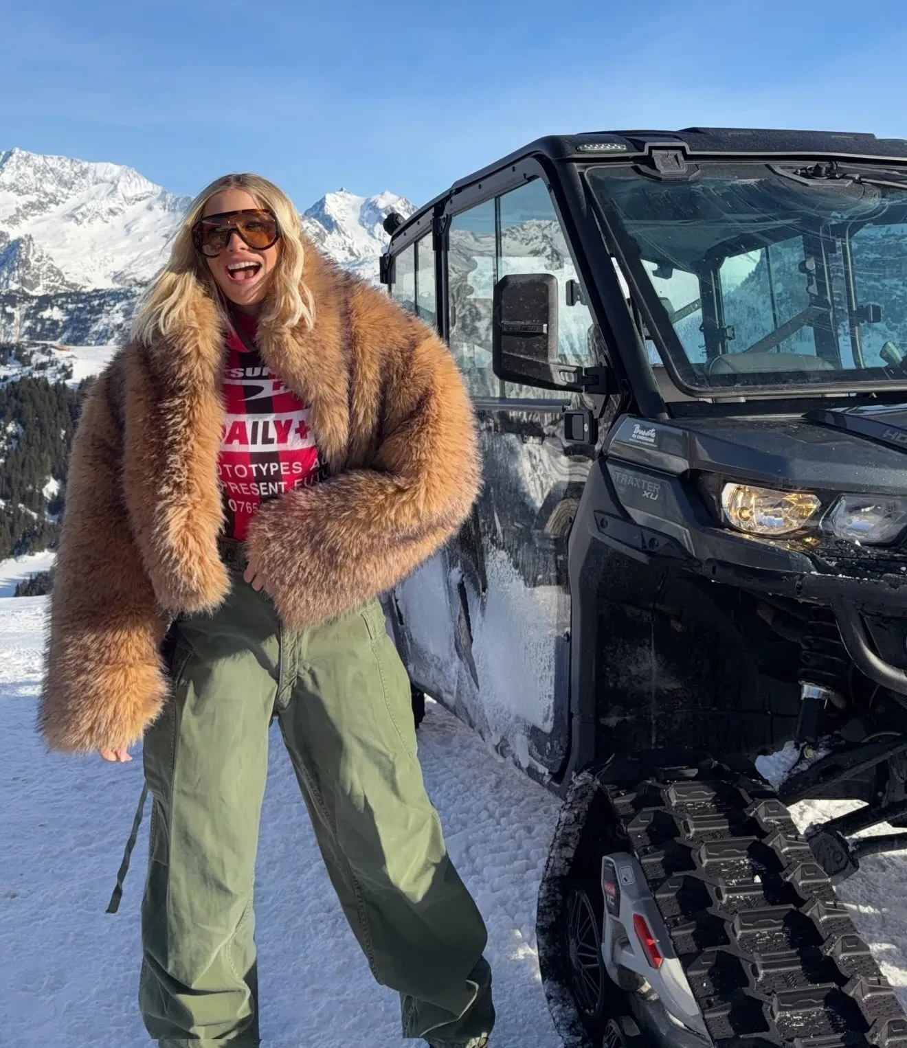 На второй день тура бренд устроил для звёздных гостей светский обед. 44-летняя Собчак пришла сразу по прилёте — в леопардовом жилете и белой меховой шапке, а 39-летняя Елена Перминова появилась в красном горнолыжном костюме и шубе. Гостей встречали местные музыканты, а среди угощений были устрицы и коктейли.