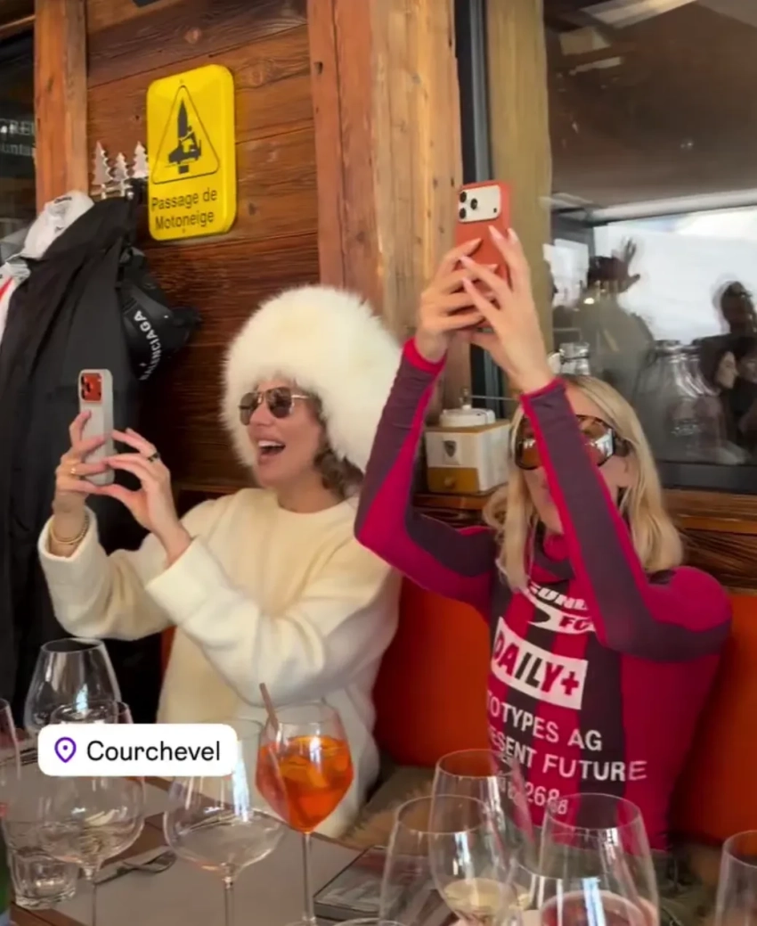 Оксана Самойлова и Ксения СобчакПосле обеда звёзды отправились кататься на лыжах, а вечером их ждали ужин и выступление известной французской певицы Патрисии Каас. Далее вечер продолжился громкой вечеринкой, а за музыку отвечал бойфренд Елены Перминовой и по совместительству диджей Тарас Романов.
