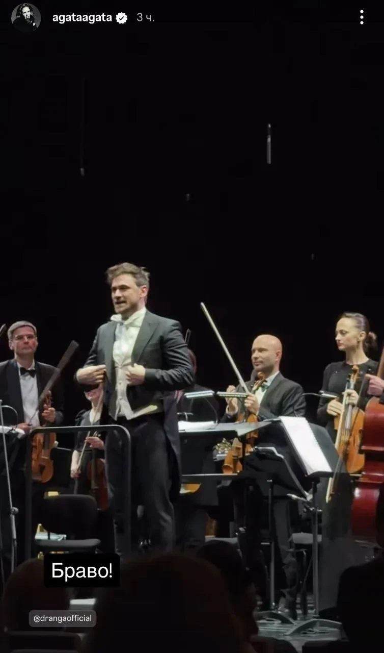 "Когда твой муж — гений. Как же это красиво. Браво!", — написала Агата в сторис* под видео с концерта.