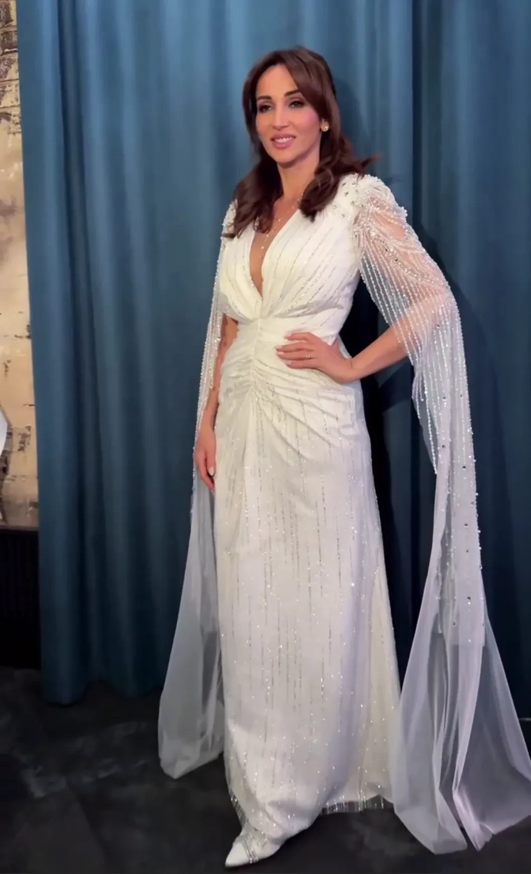 Фото Анфисы ЧеховойНа роспись в ЗАГСе ведущая пришла в белом комбинезоне бренда Ammonit, а на вечеринку переоделась в платье Magirani с декольте. В начале празднования жених и невеста станцевали танец молодожёнов под хит Селин Дион All By Myself, а после отмечали с гостями и тамадой.