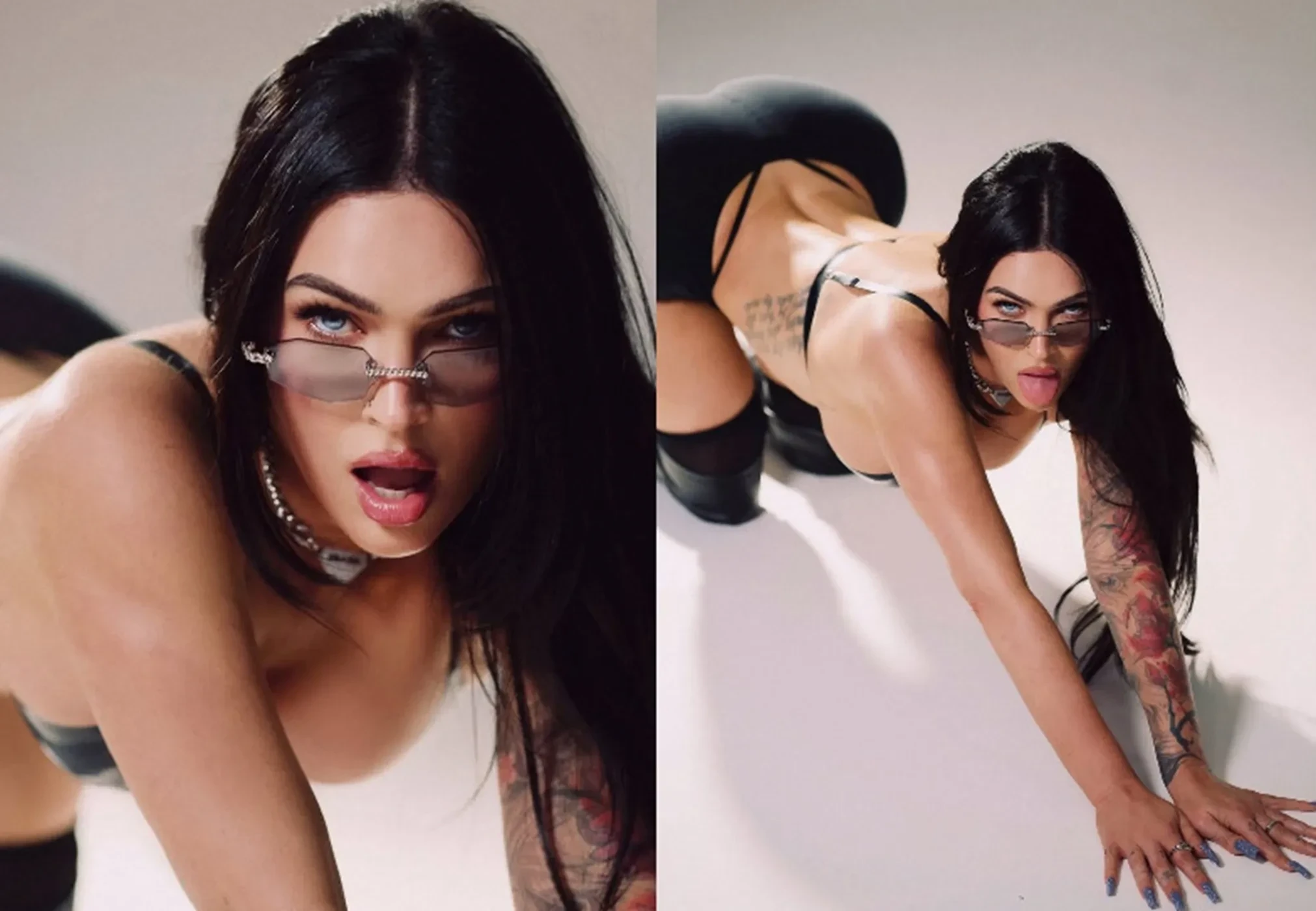 Меган Фокс, которая недавно вернулась в соцсети после перерыва, связанного с рождением ребёнка и неприятностями в личной жизни, показала новые фото из последней фотосессии, где снялась в нижнем белье. На снимках 39-летняя актриса попозировала в бюстгальтере, микрошортах и чулках.