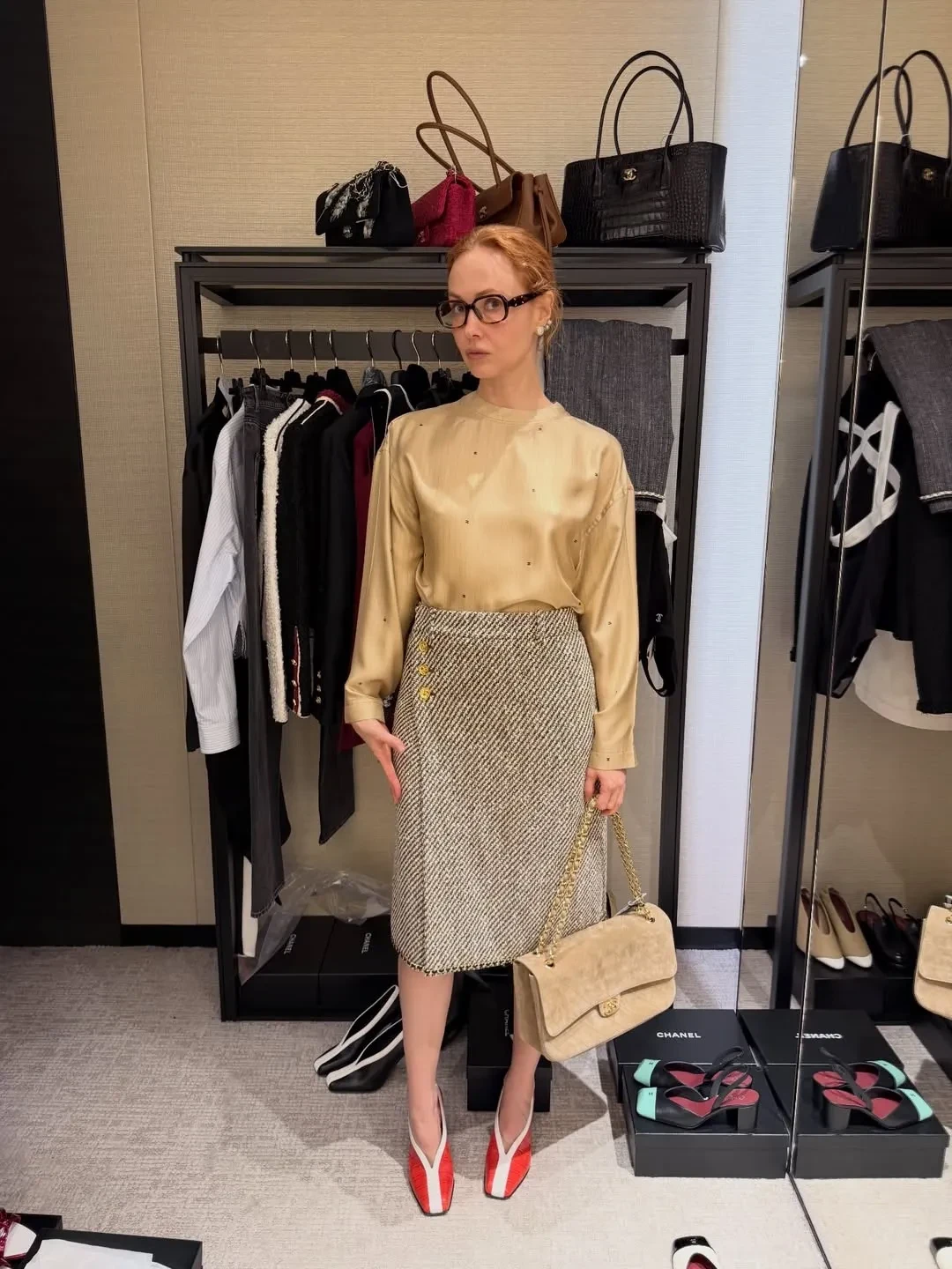 44-летняя Ксения Собчак показала свои образы для показа Schiaparelli, а также примерила костюм Thom Browne, а Ольга Карпуть снялась в прозрачном платье в отеле. Гражданская жена главы Газпромбанка Даша Попова выгуляла шубы, а Елена Перминова блистала на показе Miu Miu в "советском" платье. Похожие вещи из весенней коллекции бренда, посвящённой женщинам-рабочим и домохозяйкам, примерили Оксана Бондаренко, Алиса Вольская, Мария Лобанова и Ксения Шипилова.