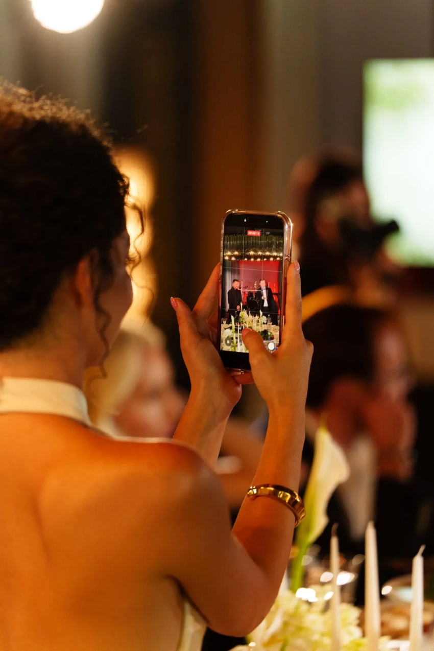 Интерьер вечеринки и даже праздничный торт были выдержаны в бело-золотых тонах. Актриса за вечер сменила два образа: сначала она появилась в белом платье с открытой спиной, а позже надела платье с корсетом. 38-летний Павел Прилучный выбрал для праздника чёрный костюм.