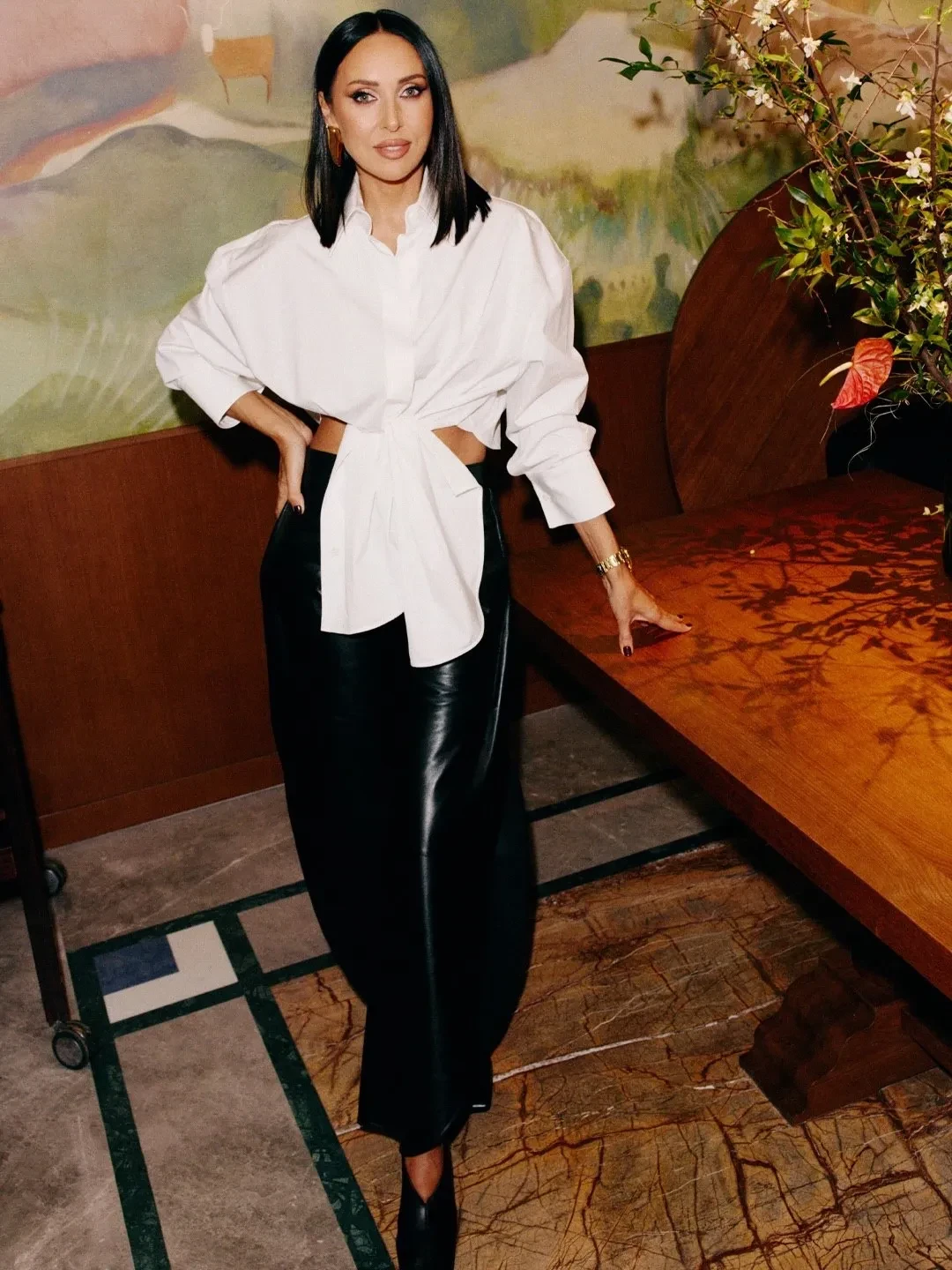 42-летняя певица Алсу появилась на мероприятии с новой стрижкой, в кожаной юбке и белой блузе, а 64-летняя Сати Спивакова позировала в синем тренче с сумкой Hermes. Мария Миногарова надела платье с высоким разрезом, а Оксана Рим позировала в кейпе The Row и туфлях Saint Laurent.