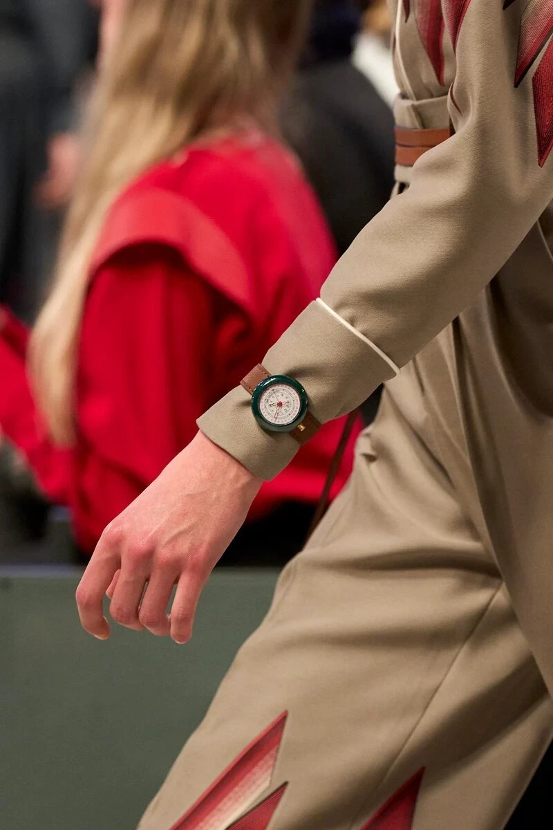 Когда температура опускается ниже нуля, длинные и плотные рукава пальто и свитеров прячут привычный аксессуар. Часы теряются в текстурах, а их эстетическая функция почти исчезает. К тому же зимние луки часто однообразны: пальто, свитер, шарф. В такой ситуации традиционный способ ношения часов перестает быть способом самовыражения.