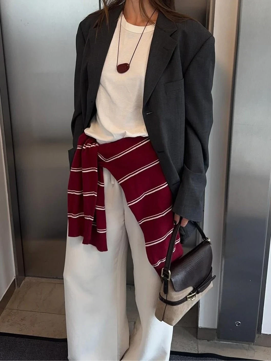 Одно из самых гармоничных зимних сочетаний — молочные оттенки с рыже-коричневой замшей.