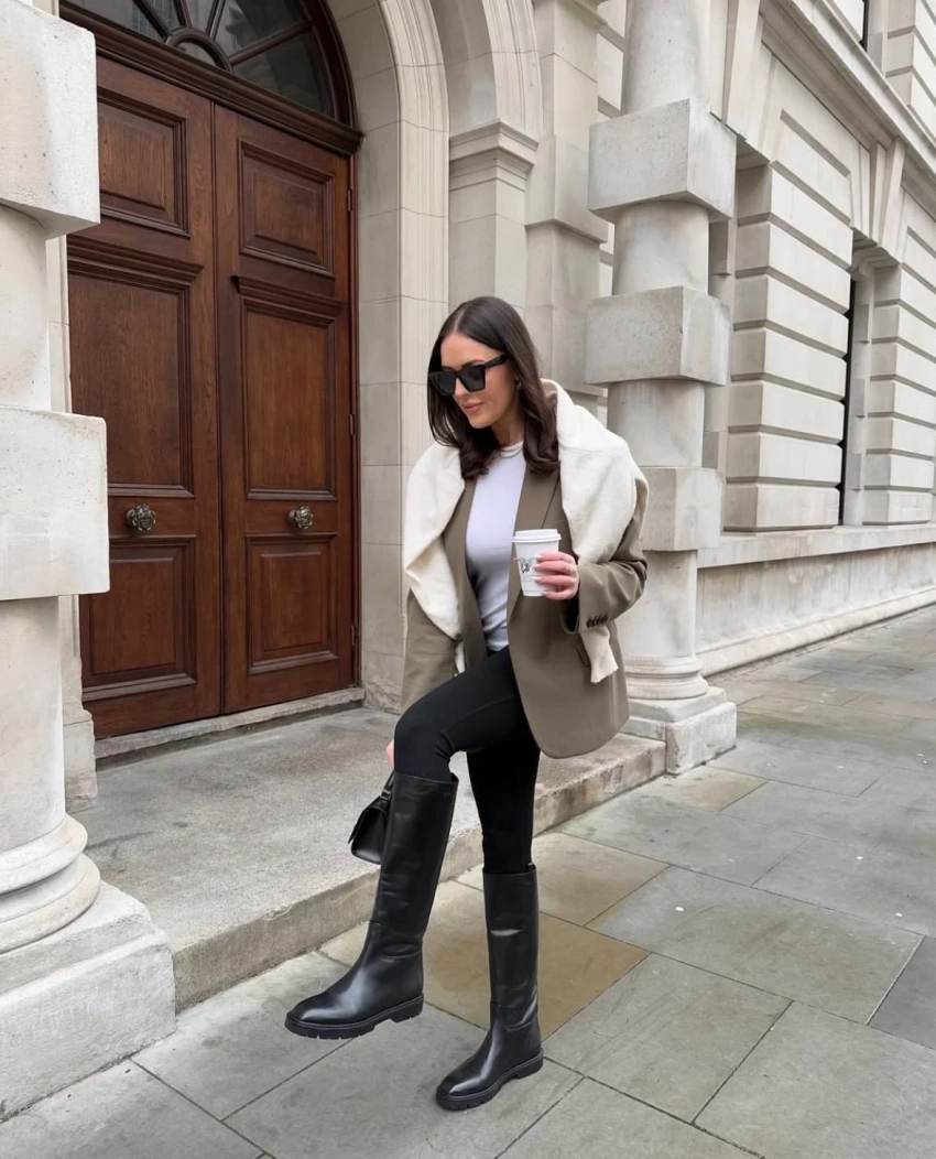 Главное преимущество ботфортов — работа с пропорциями. Они добавляют образу собранности, вытягивают силуэт и позволяют выглядеть эффектно даже в прохладную погоду, не жертвуя комфортом. Весной 2026 ботфорты становятся инструментом стилизации: с их помощью можно легко балансировать длину, объем и фактуру.